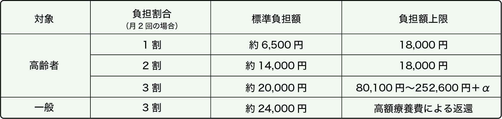 標準負担額は月2回の定期訪問および、24時間365日体制に対する1か月あたりの負担金額です。